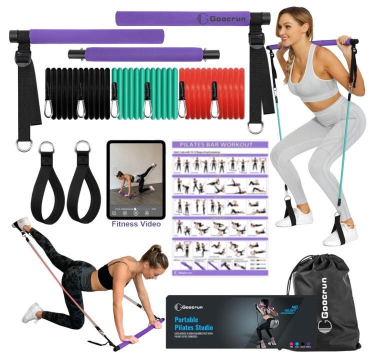 Kit de Barra de Pilates Portátil con Bandas de Resistencia para Hombres y Mujeres – 3 Juegos de Bandas de Resistencia para Ejercicio – Gimnasio en Casa Multifuncional – Soporta Entrenamientos