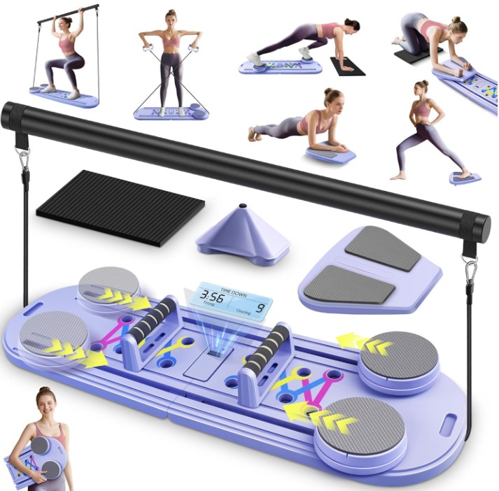 - Equipo multifuncional de Pilates: Este reformador de pilates proporciona una variedad de ejercicios bien diseñados para ayudarlo a entrenar eficazmente sus músculos centrales. Combina múltiples funciones, incluyendo tabla de pilates, tabla de equilibrio, soporte de tablones, banda de resistencia, mangos push-up, rodillo abdominal y otras funciones. La máquina reformadora de pilates satisface las necesidades de entrenamiento de principiantes a usuarios avanzados y es muy adecuada para ejercicio de cuerpo completo